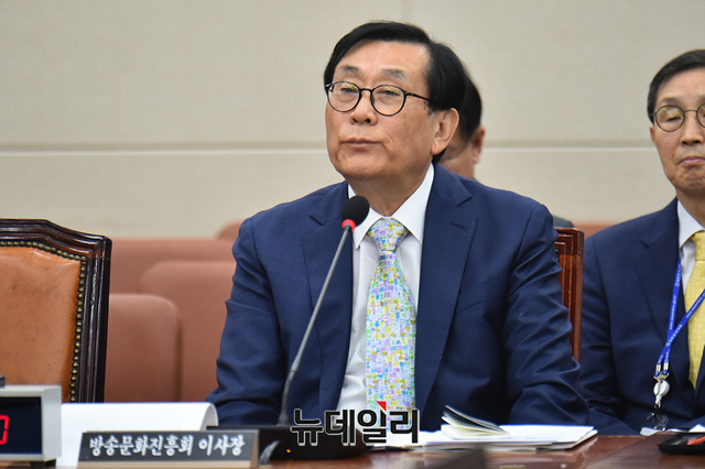 김상균 방송문화진흥회 이사장이 14일 오전 국회에서 열린 과학기술정보방송통신위원회의 국정감사에 출석해 의원들의 질문에 답하고 있다.