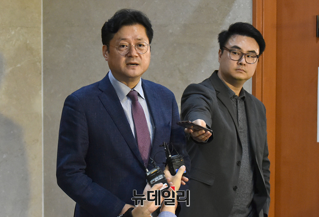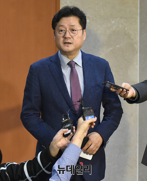 [포토] 기자들의 질문에 답하는 홍익표 민주당 수석대변인