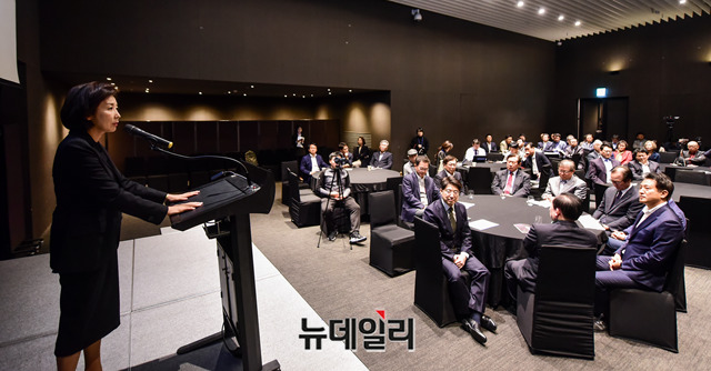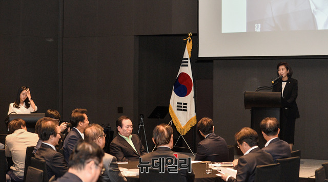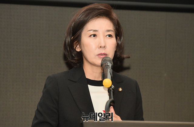 나경원 자유한국당 원내대표가 14일 오후 서울 여의도 글래드호텔에서 열린 '천영식의 증언, 북콘서트'에서 축사를 하고 있다.