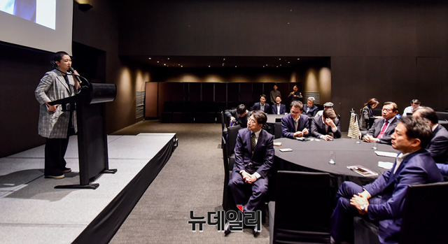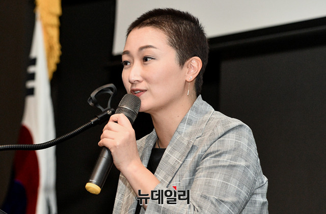 무소속 이언주 의원이 14일 오후 서울 여의도 글래드호텔에서 열린 '천영식의 증언' 출판 기념 북콘서트에서 축사를 하고 있다.