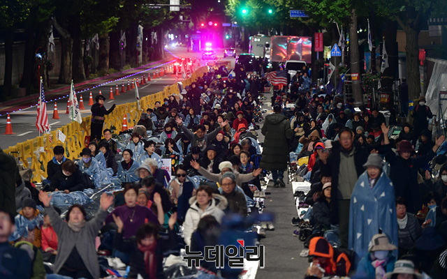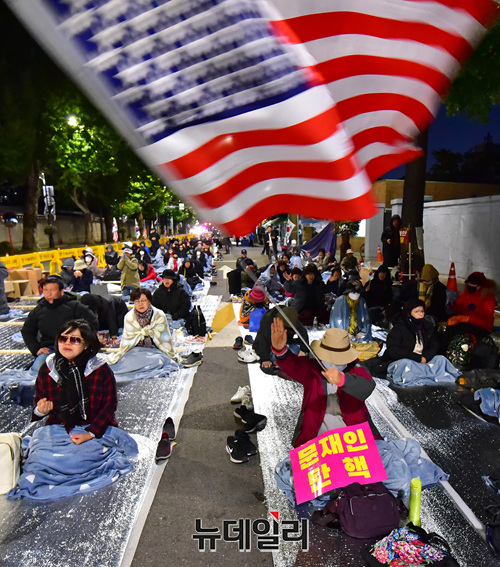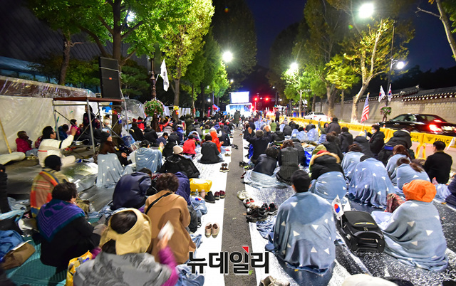 조국 사퇴한 날, 시민 400명 철야농성… 골판지, 패딩, 담요 덮고 '구국 기도'