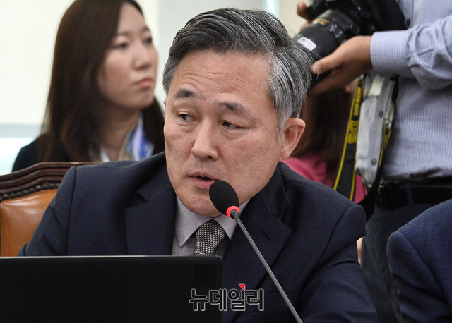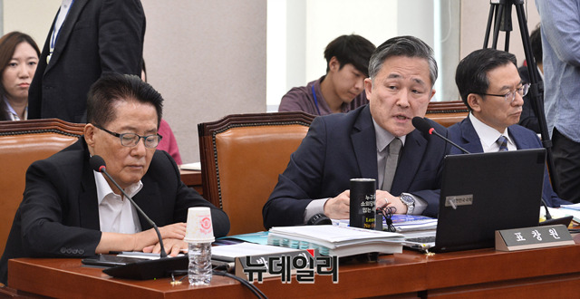 표창원 더불어민주당 의원이 15일 오전 국회 법제사법위원회의 국정감사에 참석해 질의를 하고 있다. 이날 국회 법사위 국감에는 지난 14일 조국 장관이 사퇴함에 따라 김오수 차관이 대리 출석했다.