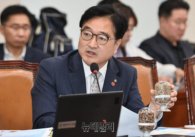 우원식 더불어민주당 의원이 15일 오전 국회에서 열린 국회 산업통상자원중소벤처기업위원회의 국정감사에 참석해 질의하고 있다.