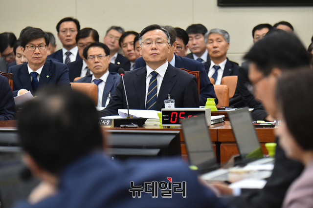 심경우 근로복지공단 이사장이 15일 오전 국회에서 열린 환경노동위원회 국정감사에서 출석해 의원들의 질문에 답하고 있다.