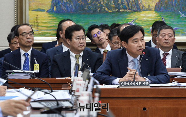 이병래 한국예탁결제원 사장이 15일 오후 국회에서 열린 국회 정무위원회의 국정감사에서 의원들의 질문에 답하고 있다.
