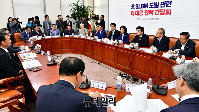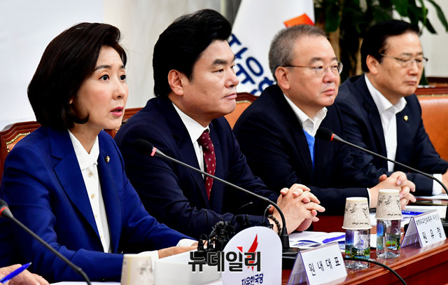 [포토] 北 SLBM 도발 전략 간담회… 발언하는 나경원