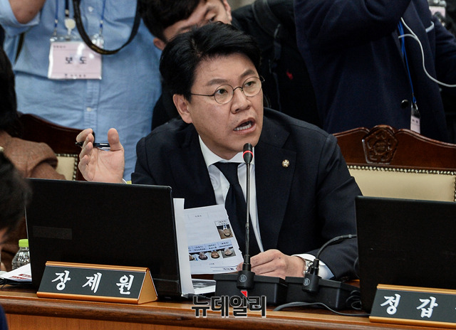 장제원 자유한국당 의원이 17일 오전 서울 서초구 대검찰청에서 열린 국회 법제사법위원회 국정감사에서 질의를 하고 있다.