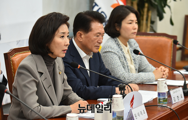나경원 자유한국당 원내대표가 17일 오전 국회에서 열린 정시확대 관련 교육위원회 간담회에서 모두발언을 하고 있다