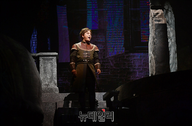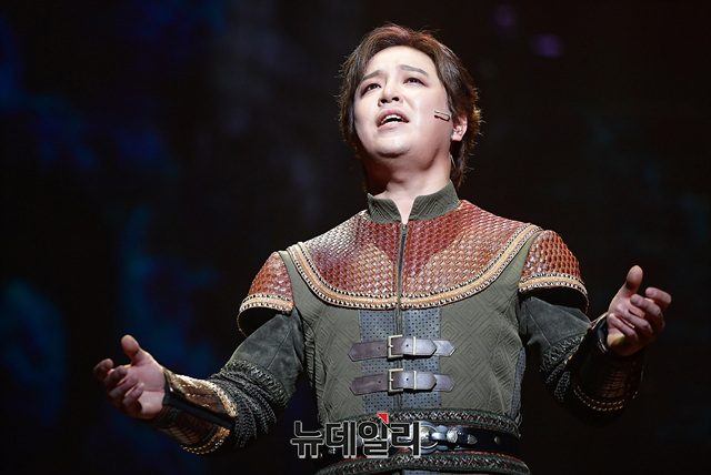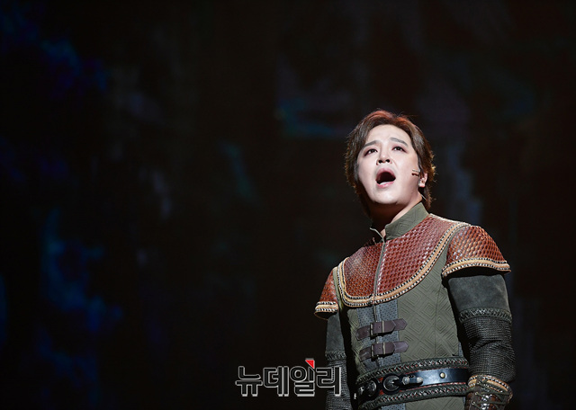 배우 최성원이 17일 오후 서울 서초구 한전아트센터에서 열린 뮤지컬 '드라큘라' 프레스콜에서 하이라이트 장면을 시연하고 있다. 13년 만에 국내 무대 귀환한 뮤지컬 '드라큘라'는 12월 1일까지 한전아트센터에서 공연된다.