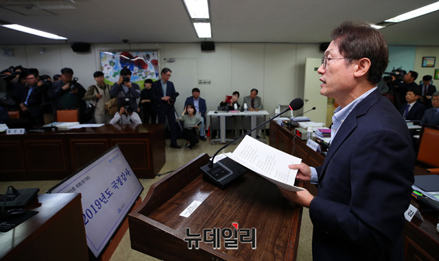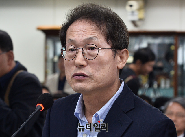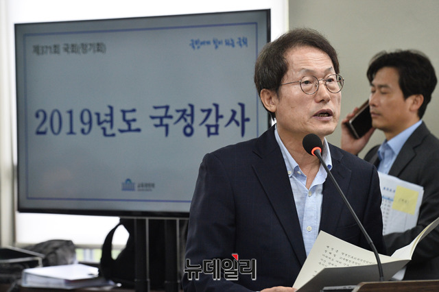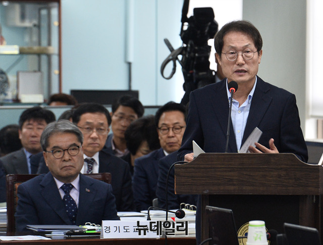 조희연 서울시 교육감이 18일 오전 서울 종로구 서울시교육청에서 열린 국회 교육위원회 국정감사에서 업무보고를 하고 있다.