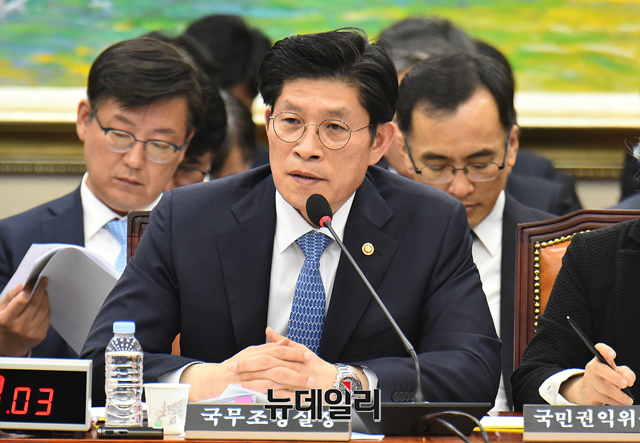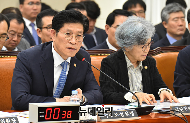 노형욱 국무조정실장이 18일 오전 국회 정무위에서 열린 국무조정실과 국무총리비서실, 공정거래위원회, 국가보훈처에 대한 국정감사에서 의원들의 질문에 답하고 있다.