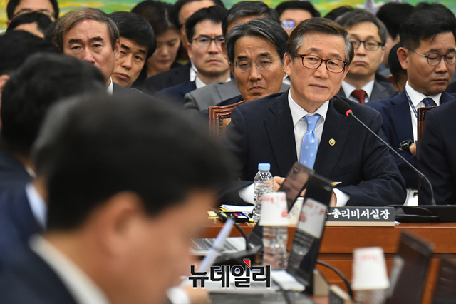 정운현 국무총리 비서실장이 18일 오전 국회 정무위에서 열린 국무조정실과 국무총리비서실, 공정거래위원회, 국가보훈처에 대한 국정감사에서 의원들의 질문에 답하고 있다.
