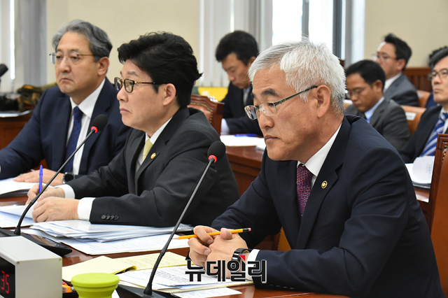 김종석 기상청장이 18일 오전 국회에서 열린 환경노동위원회 종합감사에서 의원들의 질의에 답변을 하고 있다.