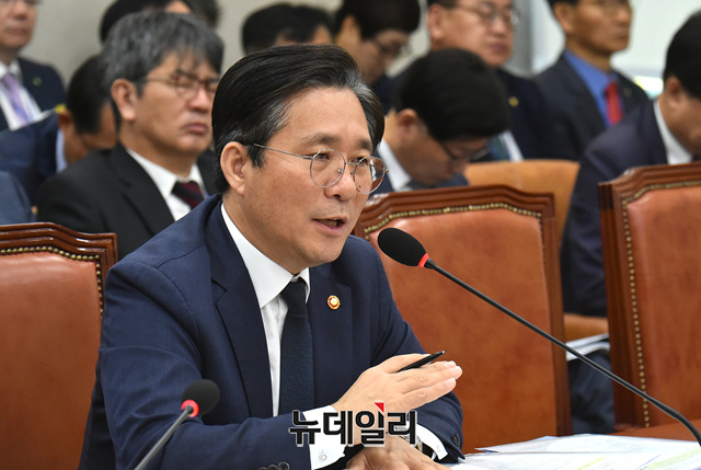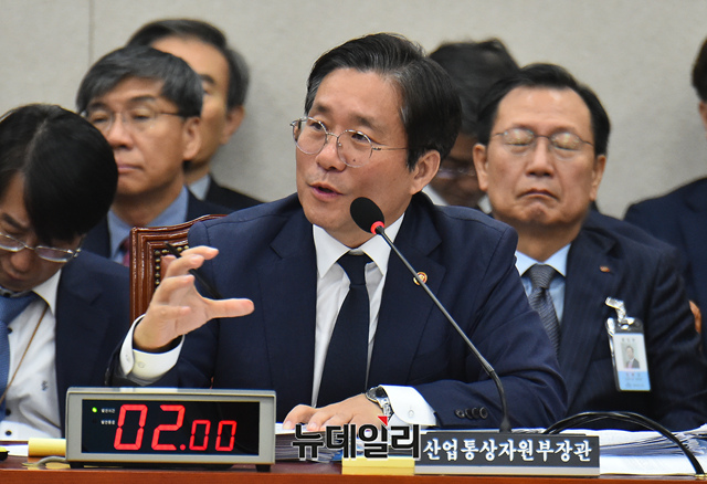 성윤모 산업통상자원부 장관이 18일 오전 국회에서 열린 산업통상자원중소벤처기업위원회 산업통상자원부 종합감사에 참석해 의원들의 질문에 답하고 있다.