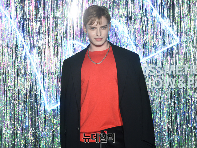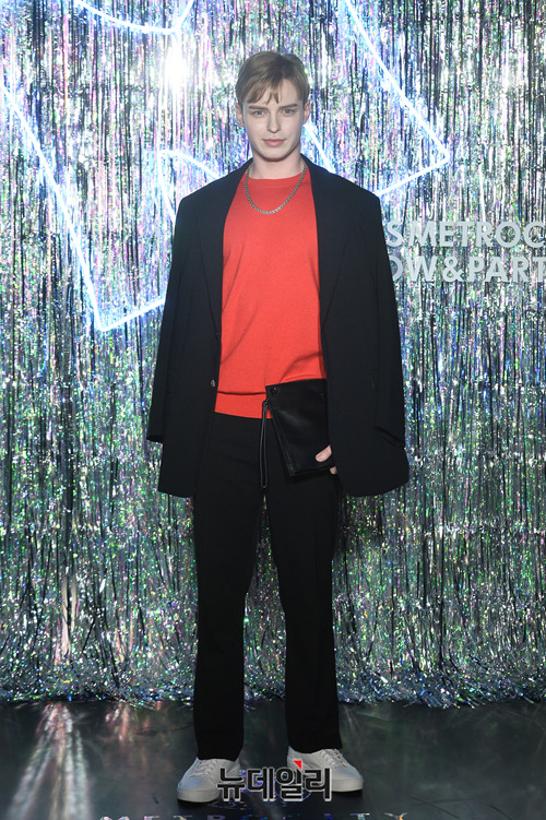 모델 매튜가 18일 오후 서울 용산구 서울드래곤시티 스카이킹덤에서 열린 '20SS 메트로시티 패션쇼 파티'에서 포토타임을 갖고 있다.