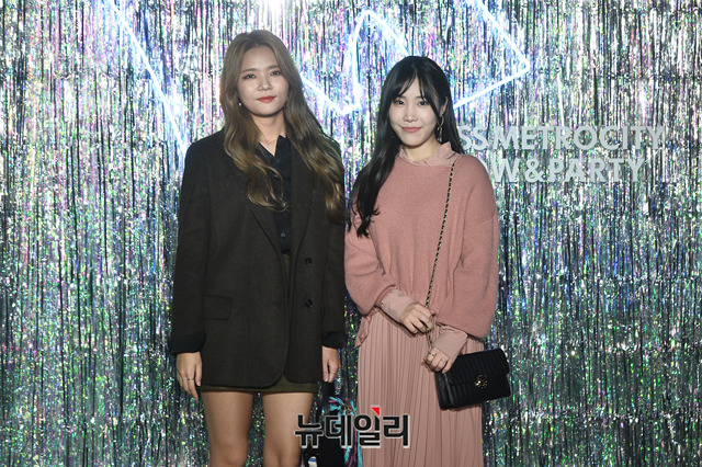 걸그룹 열두달 예림(왼쪽), 나율이 18일 오후 서울 용산구 서울드래곤시티 스카이킹덤에서 열린 '20SS 메트로시티 패션쇼 파티'에서 포토타임을 갖고 있다.