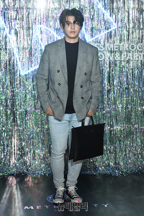 가수 주익현이 18일 오후 서울 용산구 서울드래곤시티 스카이킹덤에서 열린 '20SS 메트로시티 패션쇼 파티'에서 포토타임을 갖고 있다.
