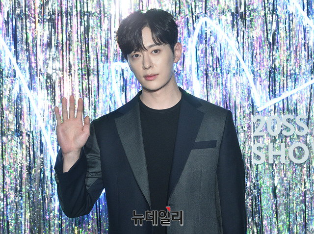 아이돌그룹 보이프렌드 동현이 18일 오후 서울 용산구 서울드래곤시티 스카이킹덤에서 열린 '20SS 메트로시티 패션쇼 파티'에서 포토타임을 갖고 있다.