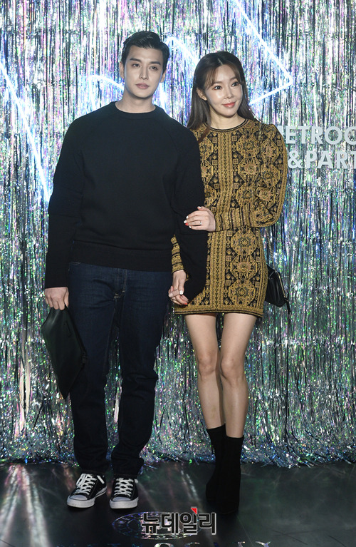 가수 일라이(왼쪽), 방송인 지연수가 18일 오후 서울 용산구 서울드래곤시티 스카이킹덤에서 열린 '20SS 메트로시티 패션쇼 파티'에서 포토타임을 갖고 있다.