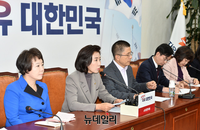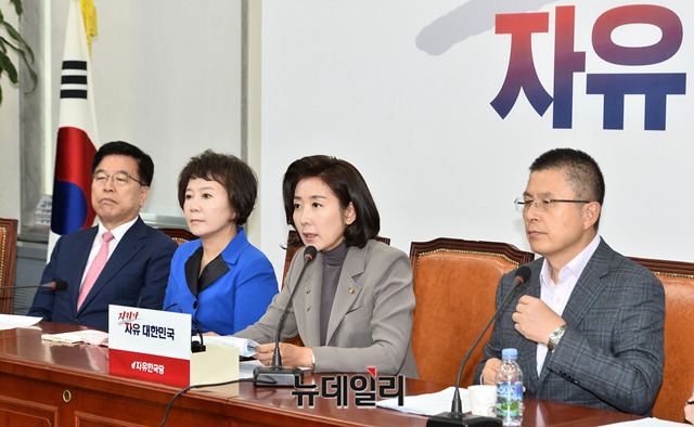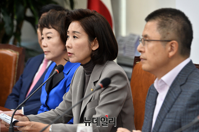 나경원 자유한국당 원내대표가 21일 오전 국회에서 열린 최고위원회의에서 모두발언을 하고 있다.
