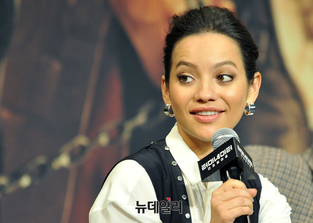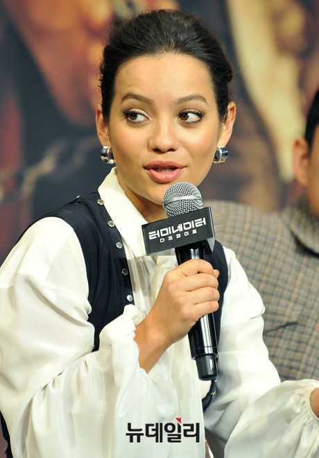 나탈리아 레이즈가 21일 오전 서울 종로구 포시즌스호텔 서울에서 열린 영화 '터미네이터: 다크 페이트' 내한 기자회견에서 취재진의 질문에 답하고 있다.
