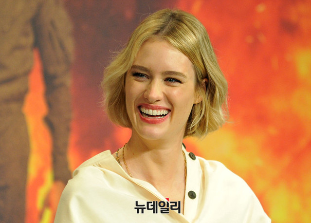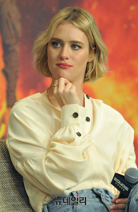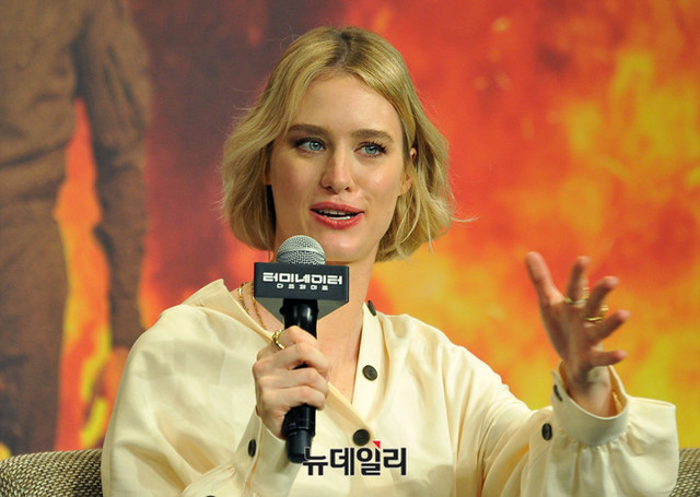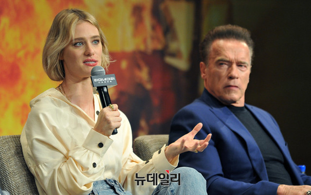 매겐지 데이비스가 21일 오전 서울 종로구 포시즌스호텔 서울에서 열린 영화 '터미네이터: 다크 페이트' 내한 기자회견에서 취재진의 질문에 답하고 있다.