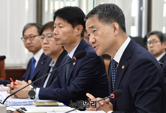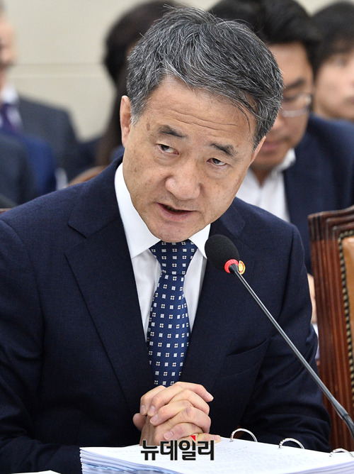박능후 보건복지부 장관이 21일 오전 국회에서 열린 보건복지위원회 국정감사에서 의원들의 질의에 답하고 있다.