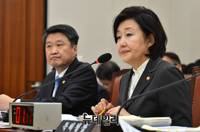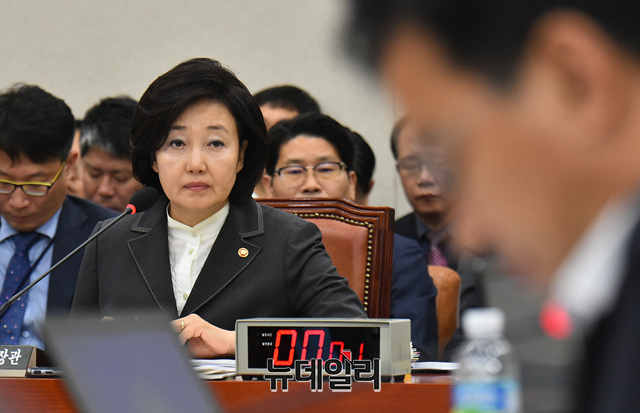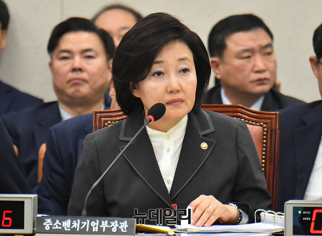 박영선 중소벤처기업부 장관이 21일 오전 국회에서 열린 산업통상자원중소벤처기업위원회 종합감사에 출석해 의원들의 질문에 답하고 있다.