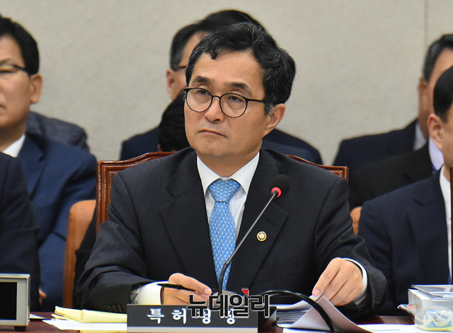 박원주 특허청장이 21일 오전 국회에서 열린 산업통상자원중소벤처기업위원회 종합감사에 출석해 의원들의 질문을 듣고 있다.