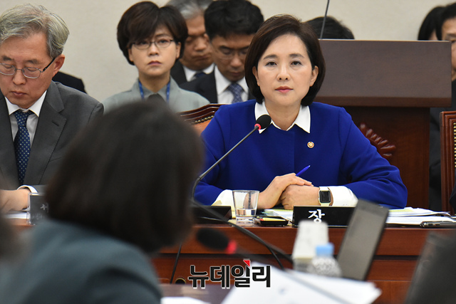 유은혜 사회부총리 겸 교육부 장관이 21일 오전 국회에서 열린 교육부 및 소속·유관·공공 기관 등 교육위원회 종합 국정감사에 출석해 의원들의 질문에 답하고 있다.