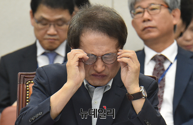 조희연 서울시교육감이 21일 오전 국회에서 열린 교육부 및 소속·유관·공공 기관 등 교육위원회 종합 국정감사에 출석해 안경을 고쳐쓰고 있다.
