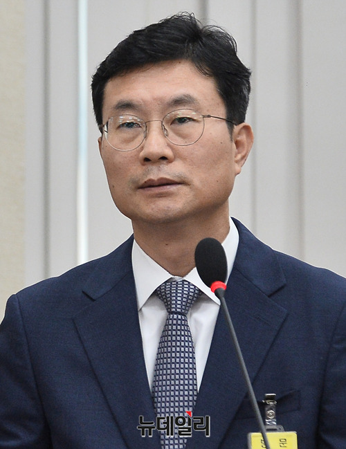 서득현 티센크루프엘리베이터 신임 대표이사가 21일 오후 국회에서 열린 환경노동위원회 국정감사에서 의원들의 질의에 답하고 있다.