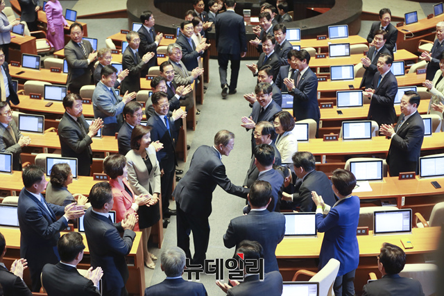 [포토] 의원들과 악수 나누는 문재인 대통령