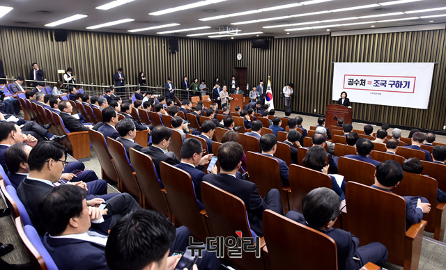 [포토] 대통령 시정연설 직후 열린 한국당 의총, 발언하는 나경원