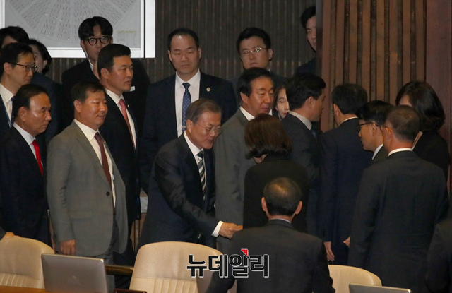 [포토] 퇴장하는 한국당, 따라가는 문재인 대통령