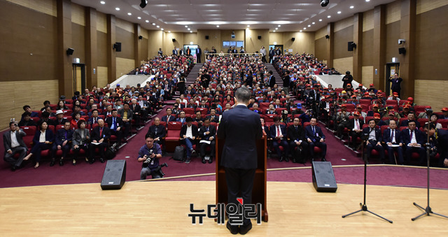 황교안 자유한국당 대표가 22일 오후 국회 의원회관에서 열린 '투명·공정·정의로운 新질서 어떻게 만들 것인가' 토론회에서 축사를 하고 있다.