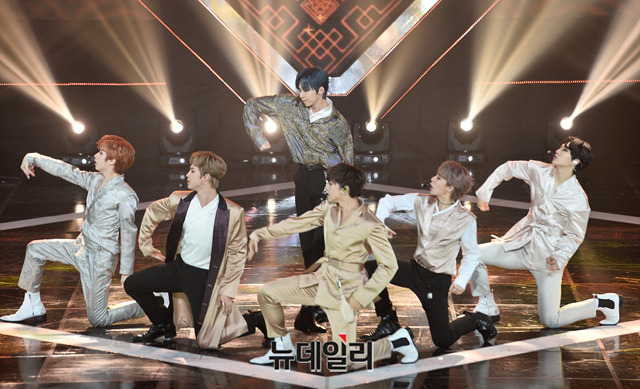 아이돌그룹 '원어스(ONEUS)'가 22일 오후 서울 마포구 SBS 프리즘타워에서 열린 SBS MTV '더 쇼(THE SHOW)' 생방송에서 무대를 선보이고 있다.