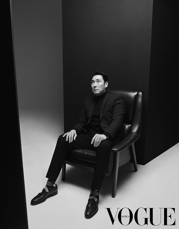 다음 컷은 영화 속 '막프로' 검사와는 사뭇 다른 반전 매력을 선보인 조진웅의 개인 컷. 깔끔하게 넘긴 포마드 헤어와 올 블랙 수트가 어우러지며 빈 틈 없이 완벽한 댄디남의 모습이 눈길을 끈다.