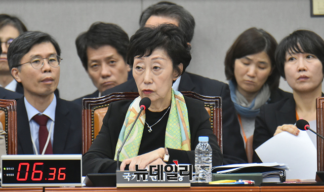 최영애 국가인권위원회 위원장이 25일 오전 국회 운영위원회에서 열린 국가인권위원회에 대한 국정감사에 출석해 의원들의 질문에 답하고 있다.
