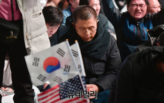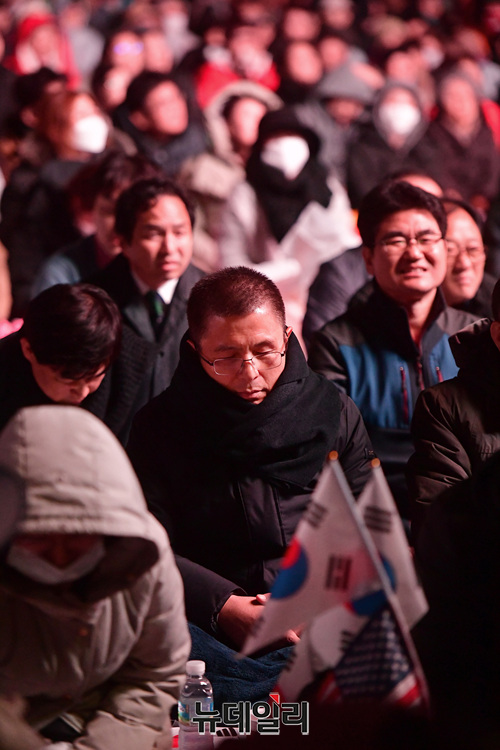 [포토] 범국민대회 철야기도 참석한 황교안