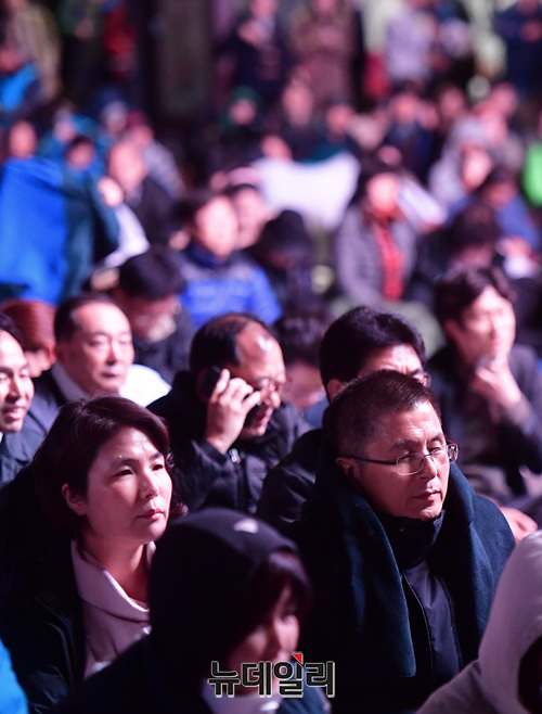 황교안 자유한국당 대표가 25일 오후부터 광화문 광장에서 열린 문재인 퇴진 '제3차 범국민대회'에 참석했다. 황 대표는 이날 오후 8시부터 집회에 참석해 철야기도회에서 기도를 하고 있다.
