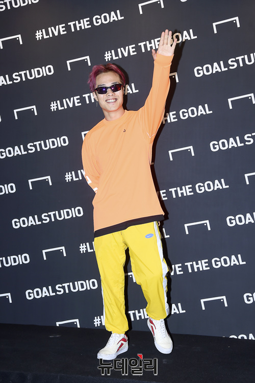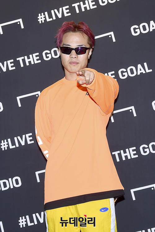 래퍼 메쉬베놈이 26일 오후 서울 강남구 골스튜디오 가로수길 플래그십 스토어에서 열린 행사에서 포토타임을 갖고 있다. 이번 행사는 축구선수 지브릴시세의 내한을 기념하고, 브랜드 슬로건 '리브더골'을 알리기 위해 마련됐다. (사진=골스튜디오)