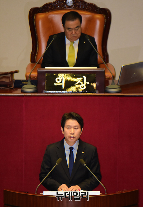[포토] 교섭단체대표연설 하는 이인영 민주당 원내대표