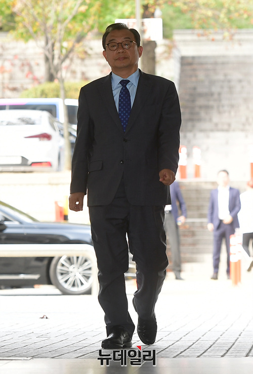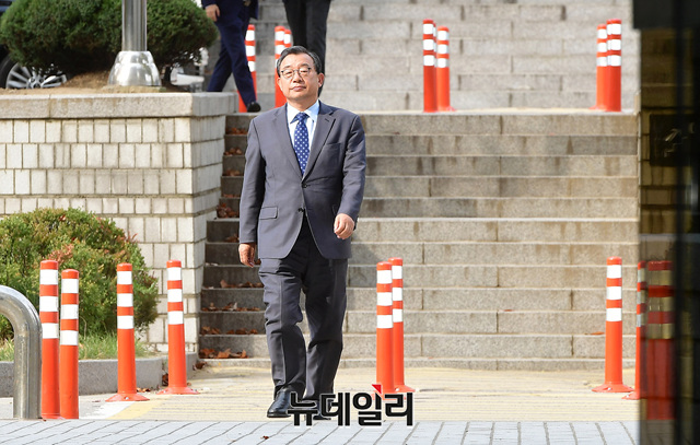 이정현 무소속 의원이 28일 오후 서울 서초구 서울중앙지법에서 열린 항소심 선고 공판에 출석하고 있다. 재판부는 방송법위반 혐의를 받고 있는 이 의원에게 벌금 1,000만원을 선고했다.