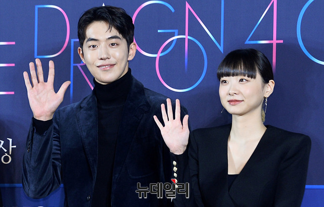 배우 한지민(왼쪽부터), 김향기, 남주혁, 김다미가 28일 오후 서울 여의도 CGV에서 열린 '제40회 청룡영화상 핸드프린팅 행사'에서 포토타임을 갖고 있다.