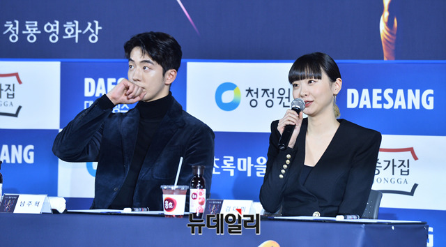 배우 김다미가 28일 오후 서울 여의도 CGV에서 열린 '제40회 청룡영화상 핸드프린팅 행사'에서 소감을 전하고 있다.