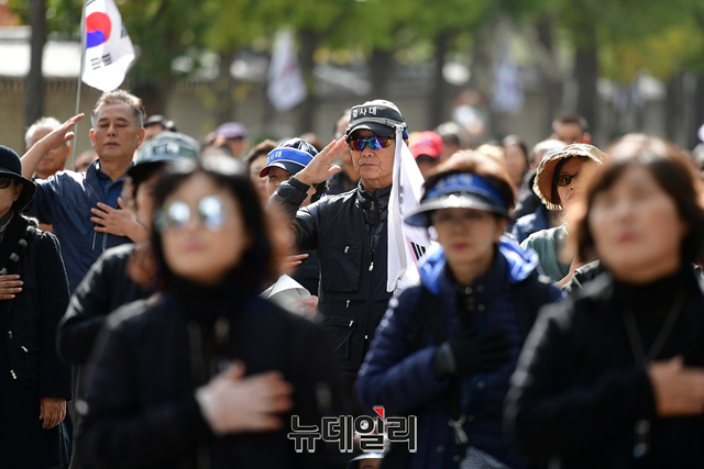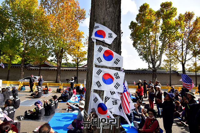 이들은 지난 3일 제1차 범국민대회 직후 이곳에서 '문재인 퇴진'을 촉구하며 철야농성을 27일째 이어가고 있다. '조국 사퇴'를 촉구하며 시작된 삭발투쟁은 현재까지 87명이 참가했다.