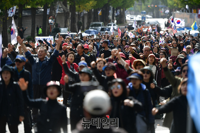 [포토] 26박27일, '문재인퇴진' 청와대 철야농성장