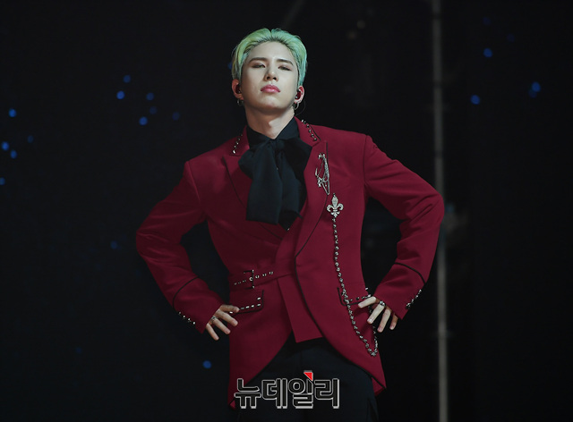 5인조 아이돌그룹 에이스(A.C.E) 와우가 29일 오후 서울 광진구 예스24라이브홀에서 열린 3번째 미니앨범 '언더 커버 : 더 매드 스쿼드' 쇼케이스에서 포토타임을 갖고 있다.