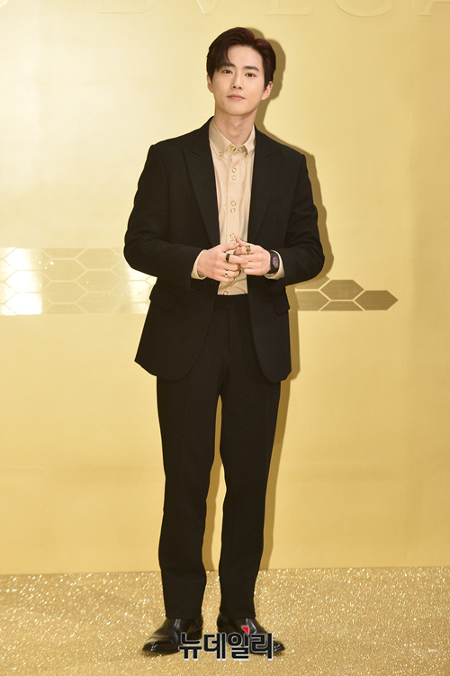 EXO(엑소) 수호가 29일 오후 서울 서초구 서울웨이브에서 열린 불가리 '세르펜티 세두토리(Serpenti Seduttori)' 런칭 기념 행사에서 포토타임을 갖고 있다.